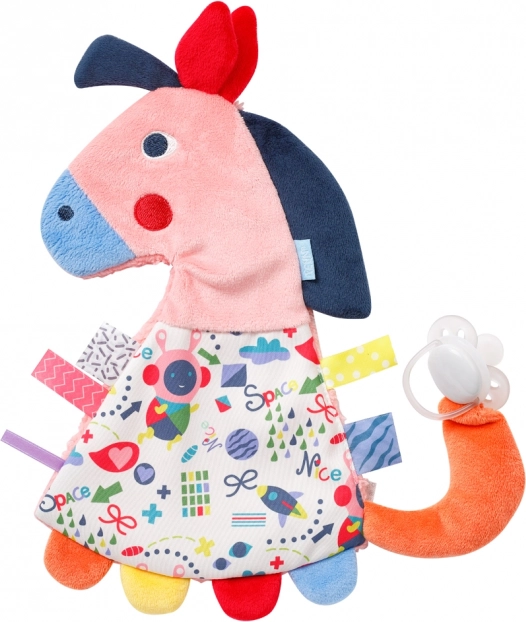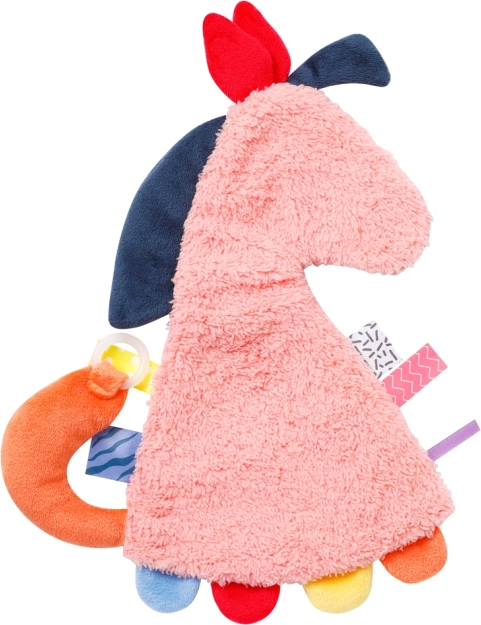 Grâce au mélange de matières et au son stimulant d’un papier froissé caché, on ne s’ennuie jamais. Les enfants adorent la forme du cheval et sa fourrure duveteuse pour le saisir, le toucher, l’explorer et se blottir contre lui ! Le mignon petit cheval peut être emporté partout et accompagne l’enfant dans ses jeux et ses rêves.