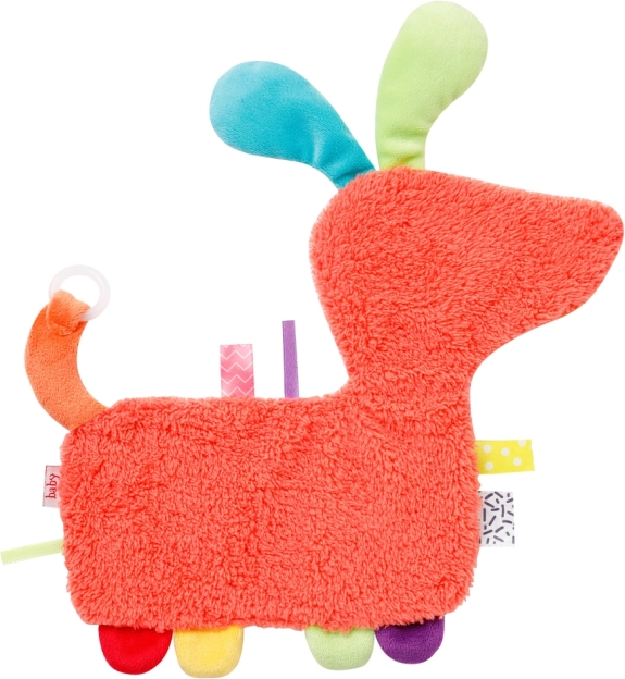 Le chien ondulé et coloré de la collection COLOR Friends éveille la curiosité de l’enfant, favorise la préhension et stimule ses sens. Grâce au mélange de matières et au son stimulant du papier froissé caché, on ne s’ennuie jamais. Les bébés adorent la forme du chien et sa fourrure duveteuse pour l’attraper, le toucher, l’explorer et se blottir contre lui ! Le joli petit chien peut être emporté partout et accompagne l’enfant pendant le jeu et le sommeil. Anneau d’attache pratique.