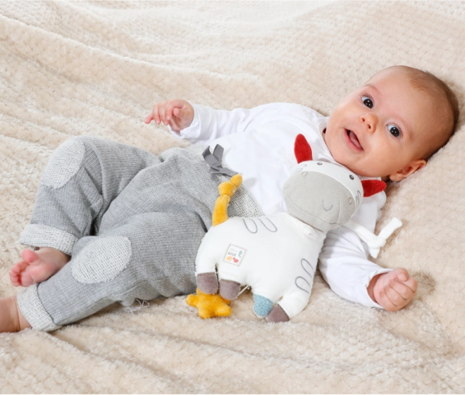 • Le zèbre câlin n’est pas seulement une peluche idéale, mais aussi un compagnon parfait où que vous soyez. Vous pouvez facilement l’attacher au lit, à la poussette ou au siège auto.