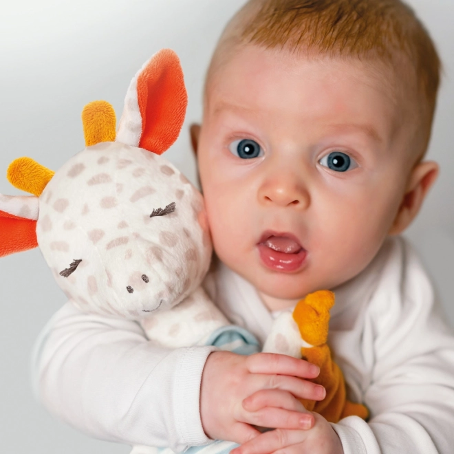 Une girafe toute douce avec un petit lit qui deviendra la meilleure amie de votre enfant.