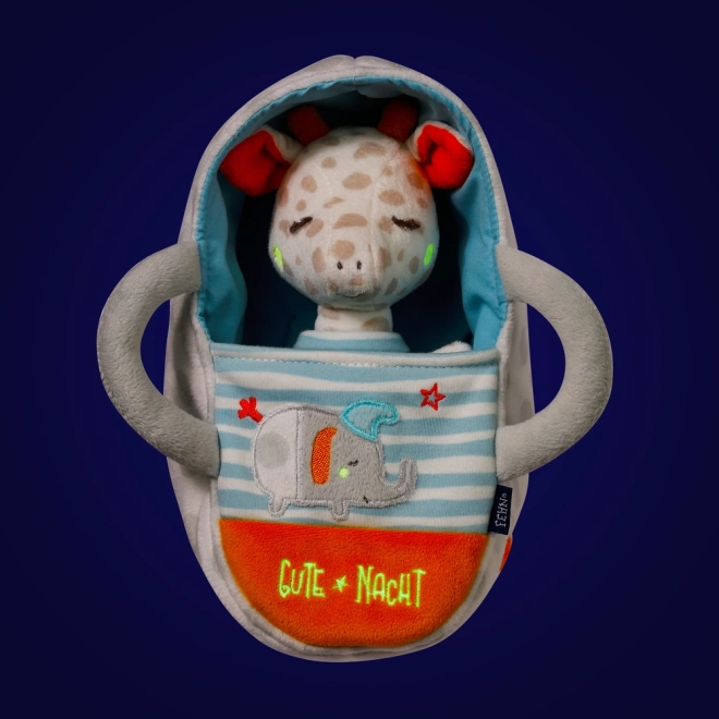 Le jour, une girafe câline qui stimule l’imagination, et la nuit, une gardienne d’un sommeil paisible – c’est la girafe en peluche avec son lit en peluche muni de poignées. Grâce à plusieurs éléments lumineux, elle dissipe aisément la peur du noir et donne à l’enfant le sentiment que quelqu’un veille sur lui toute la nuit.