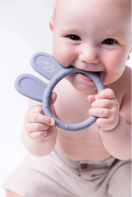 L’anneau de dentition en silicone Gray Bunny apaise les gencives et aide lors de la poussée dentaire. 100 % silicone, sans BPA ni PVC, entretien facile, compatible lave-vaisselle.