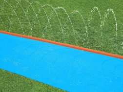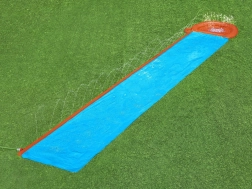 Ce toboggan est équipé d'un système de jets d'eau qui garantit une humidification optimale de la surface et permet de glisser facilement. Les jets intégrés s'activent lorsque le tuyau de jardin est connecté. La conception permet une fin douce et sécurisée grâce à l'extrémité gonflable. Fabriqué en vinyle résistant, il assure une longue durée de vie.
