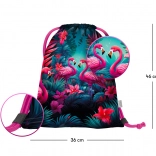 Un set scolaire BAAGL Ergo Flamants stylé pour le premier degré de l’école primaire, comprenant un cartable ergonomique, une trousse à un étage et un sac pour chaussures. Le cartable offre un système dorsal réglable, une fermeture magnétique Fidlock, un poids léger et des éléments réfléchissants pour la sécurité. La trousse et le sac s’accordent avec le même design tropical à flamants.