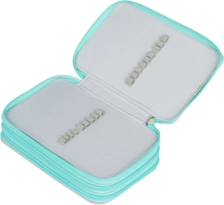 Chaque étage offre un maintien clair des fournitures grâce à des élastiques solides, adaptés également aux crayons et feutres plus épais. Le dos renforcé facilite la fermeture et les fermetures éclair YKK garantissent une longue durée de vie et une ouverture fluide.