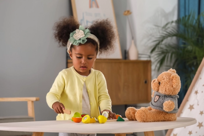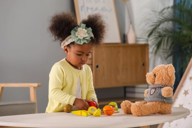 Ce set de fruits en bois de qualité offre aux enfants une expérience de découpe réaliste grâce aux fixations à scratch/aimant qui permettent de « couper » et de réunir les fruits encore et encore. Les fruits colorés invitent au jeu, développent la reconnaissance des couleurs et des formes et enrichissent le vocabulaire.