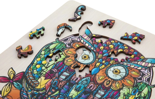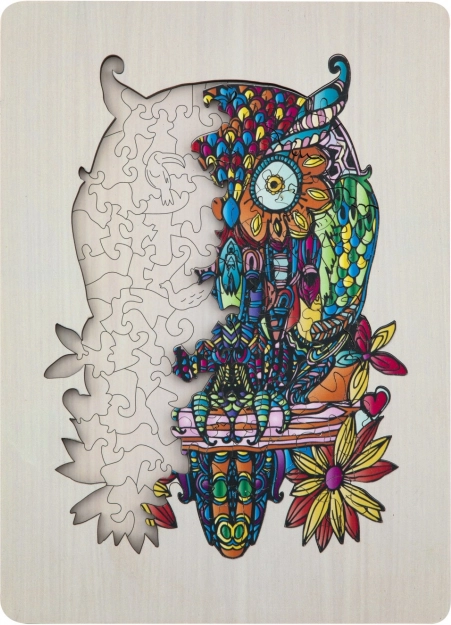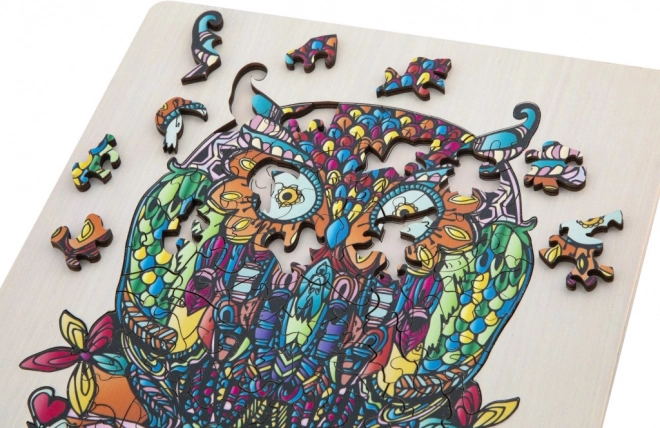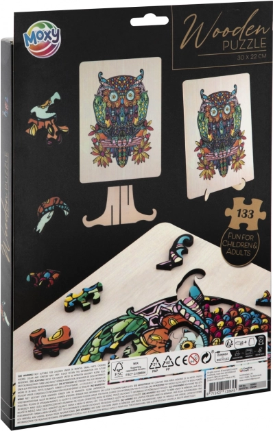 Puzzle silhouette en bois avec motif de hibou est un jouet amusant pour les enfants et les adultes. Il contient 133 pièces de formes variées et une planche de fond pour faciliter l'assemblage.