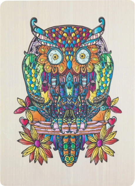 Appréciez l'assemblage d'une illustration artistique et colorée du hibou, qui offre non seulement du divertissement, mais aussi une expérience esthétique.