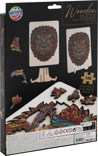 Apportez chez vous le puzzle unique MOXY avec le contour du lion, composé de 140 pièces. Le puzzle est conçu pour offrir non seulement du divertissement mais aussi un bénéfice éducatif.