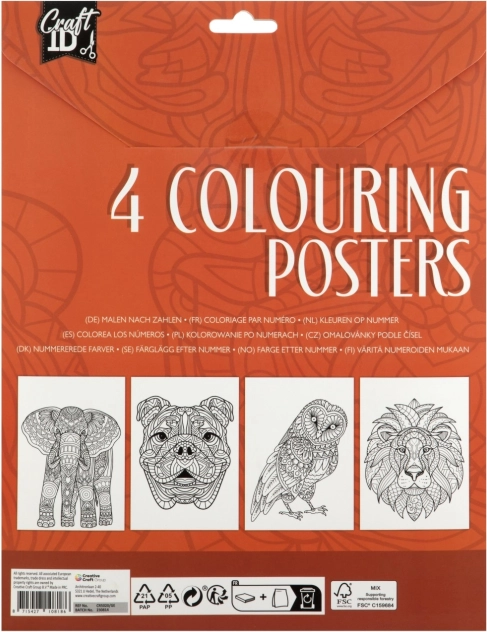 Explorez un univers de créativité avec nos affiches à colorier de la marque Craft ID. Chaque coffret comprend quatre affiches qui vous plongent dans un monde artistique plein d’imagination. Les affiches présentent des illustrations détaillées, des motifs floraux aux visages d’animaux, n’attendant plus que vos couleurs.