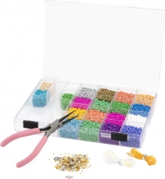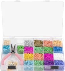 La grande boîte de perles pour la fabrication de bijoux comprend – 20 couleurs de perles, une petite pince, des fermoirs et des anneaux de jonction dorés et argentés, ainsi qu’un fil doré et argenté pour l’enfilage.