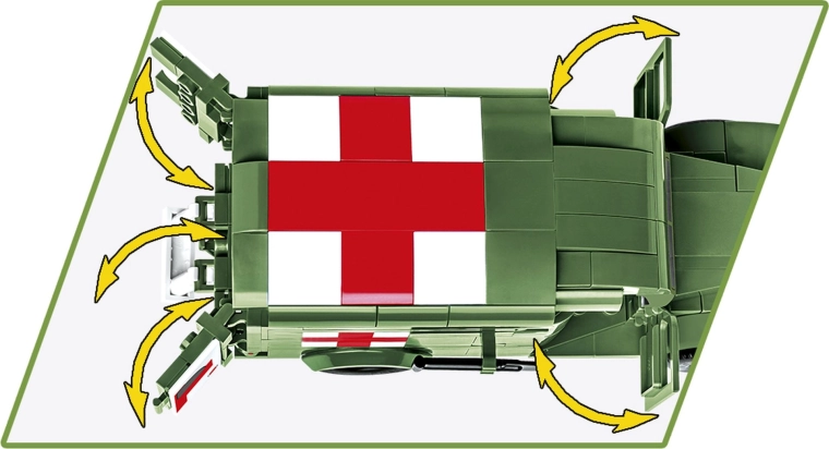 Le modèle reproduit fidèlement l’apparence de l’ambulance militaire historique destinée aux missions de sauvetage.