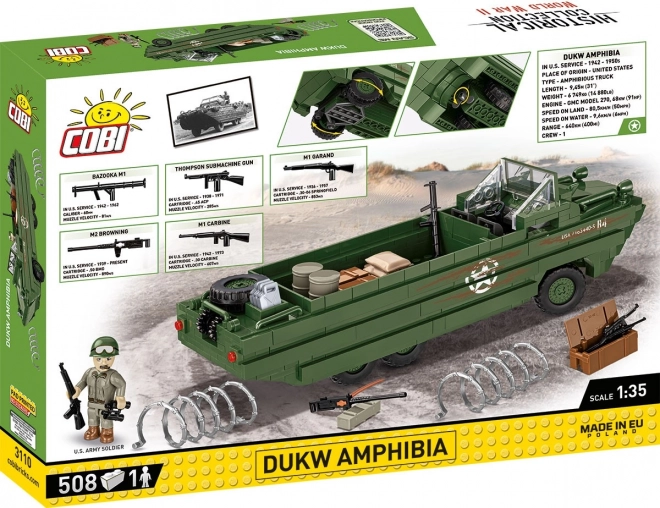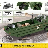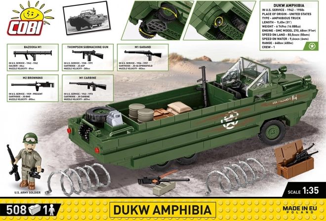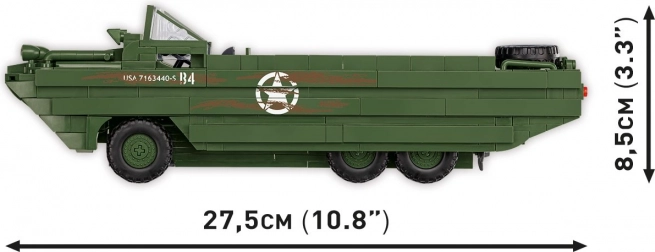Le modèle assemblé de l’amphibie DUKW propose des caractéristiques détaillées, telles que des roues orientables, et un design réaliste créé pour le 80e anniversaire du débarquement de Normandie.