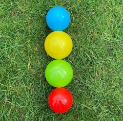 Le bleu, le jaune, le vert et le rouge favorisent la reconnaissance des couleurs et motivent au jeu actif, dehors comme à la maison.