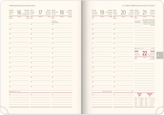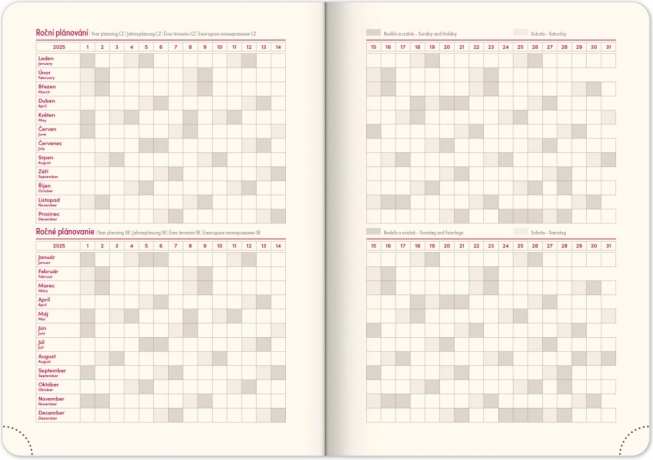 Agenda hebdomadaire Notique Twill 2025 dans une couleur bleu-argenté élégante, est l'outil idéal pour organiser vos journées. Il offre un agenda hebdomadaire clair avec un calendrier tchéco-slovaque et des légendes multilingues.