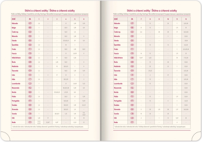 - Inclut les jours fériés de la République tchèque et de la République slovaque ainsi que les jours fériés internationaux.