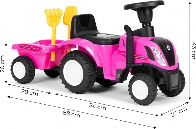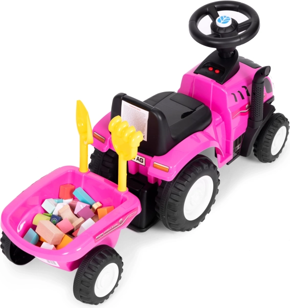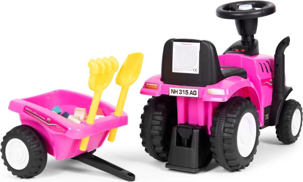 Un élégant tracteur porteur pour enfants avec remorque amovible apporte des heures de jeu actif à la maison comme dehors. Grâce à la licence NEW HOLLAND, au volant interactif avec sons du klaxon et du démarrage du moteur et à la structure stable et robuste, il est idéal pour les petits fermiers dès 12 mois. Sont inclus une pelle et un râteau, une assise confortable avec dossier et un dispositif anti-basculement pour une sécurité maximale.