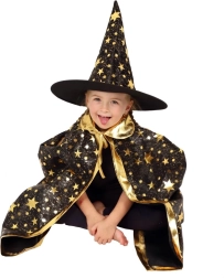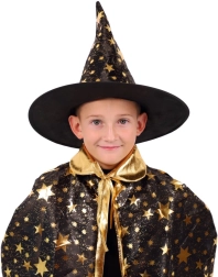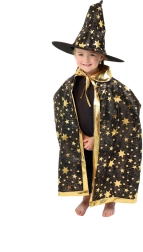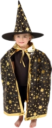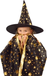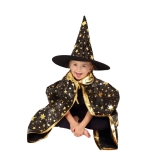 Transformez votre enfant en petit magicien. Cet ensemble noir et or à motifs d’étoiles comprend un chapeau de sorcier bien visible et une cape assortie, parfaits pour les carnavals d’enfants, bals costumés et fêtes d’Halloween. Grâce aux matières légères, il se porte facilement et permet une liberté de mouvement lors des jeux et spectacles.