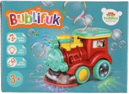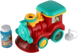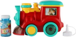 Une locomotive à bulles amusante et interactive pour enfants avec des effets sonores et lumineux, accompagnée d'une solution pour bulles pour encore plus de plaisir.