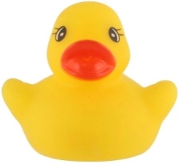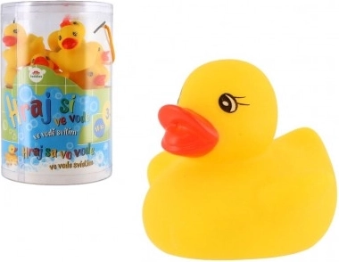 Le canard mesure 6 cm et est idéal pour les enfants à partir de 3 ans, offrant un compagnon de baignade sûr et joué.
