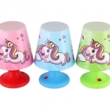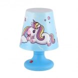 La lampe est décorée d'un motif illustré de licorne, ajoutant une atmosphère magique.