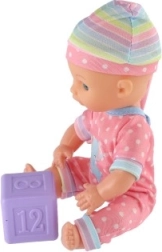 Cette ravissante poupée bébé avec corps rigide est une excellente compagne pour le jeu quotidien. Grâce à sa taille compacte de 25 cm, elle tient bien dans les petites mains et se glisse facilement dans les landaus et les petits lits d’enfants. L’emballage comprend aussi un dé de jeu qui enrichit les activités et favorise l’apprentissage des nombres et des couleurs.