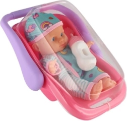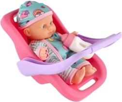 Adorable poupée au corps rigide, hauteur 20 cm, livrée dans un porte-bébé/siège auto pratique qui fera plaisir à chaque petite maman. Un biberon est inclus pour un jeu d’alimentation réaliste. Grâce à sa structure en plastique solide et à sa poignée confortable, la poupée se transporte facilement et est idéale pour les sorties et les jeux en voyage.