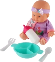 Comprend une petite bouteille, un bol, une cuillère et une fourchette – tout ce dont les petits soignants ont besoin pour nourrir leur bébé.