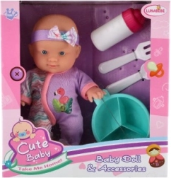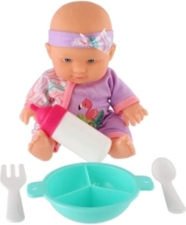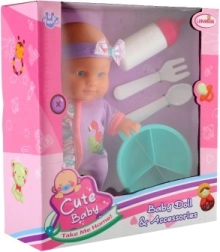 La boîte contient un set de repas complet – petite bouteille, bol, cuillère et fourchette – qui permet aux enfants d’exercer leur motricité fine et d’imiter les rituels quotidiens de soin. Jouer avec la poupée développe l’empathie, la communication et les compétences sociales.