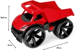 Découvrez la robuste benne pour enfants MAXIMUS dans une couleur rouge intense et d’une longueur de 59 cm. Elle combine un design futuriste, une construction légère et résistante et une benne basculante fonctionnelle avec une poignée confortable. Idéale pour jouer à la maison, au jardin ou dans le sable – les enfants adoreront ses grandes roues mates et ses détails soignés.