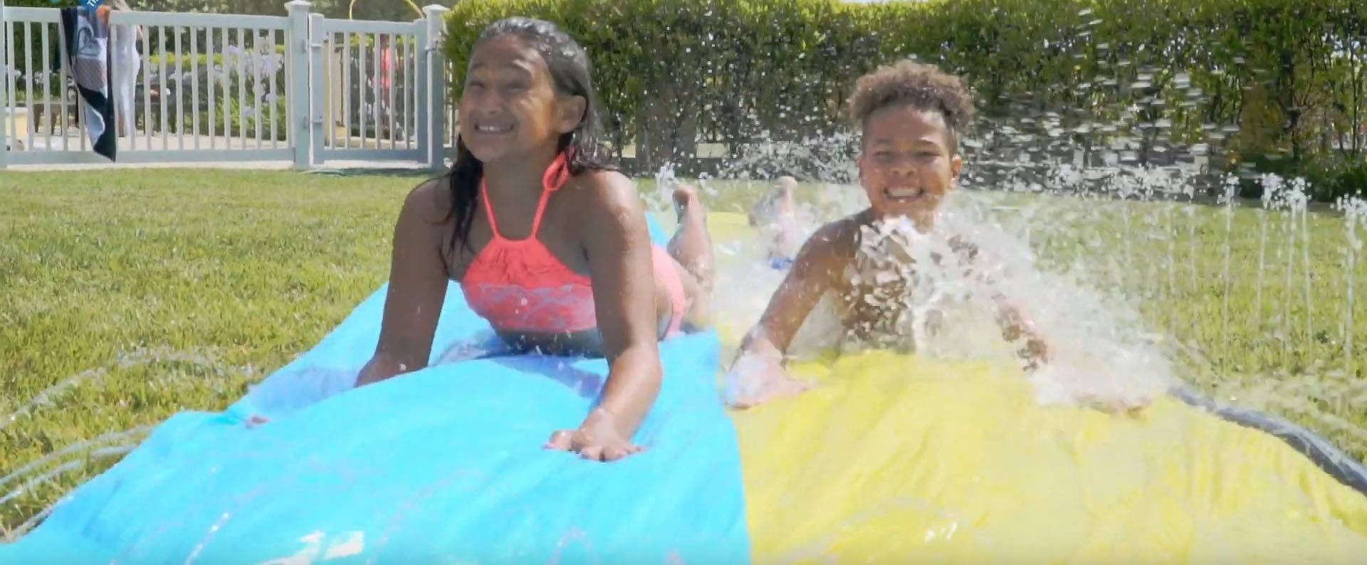 Élancez‑vous, sautez et laissez‑vous porter par une vague de fraîcheur et de fun ! Le toboggan double Wham‑O permet aux enfants de faire la course côte à côte, tandis que les gicleurs intégrés gardent la surface parfaitement glissante et agréablement rafraîchie. Grâce à des matériaux de qualité, le toboggan est prêt pour des joies estivales au quotidien.