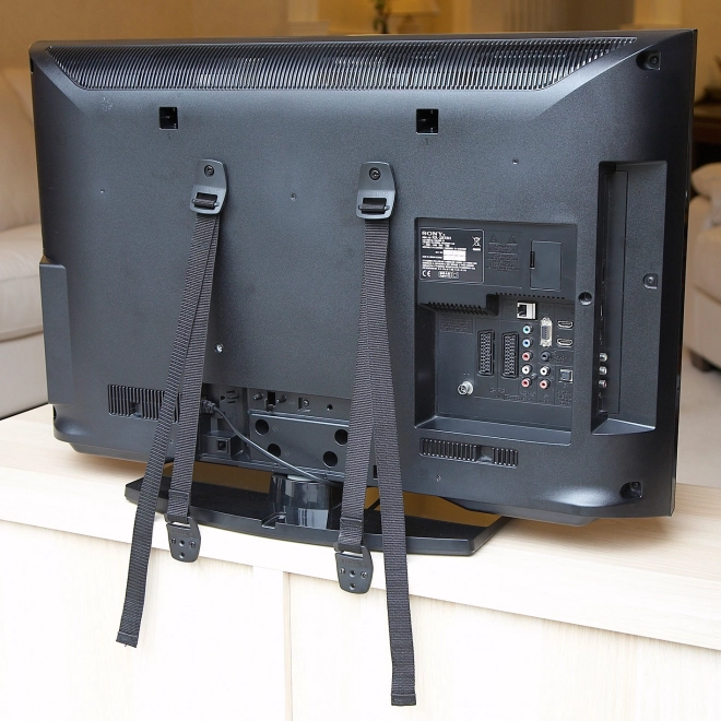 - La longueur de chaque sangle est de 84 cm, offrant un soutien suffisant pour la plupart des téléviseurs.