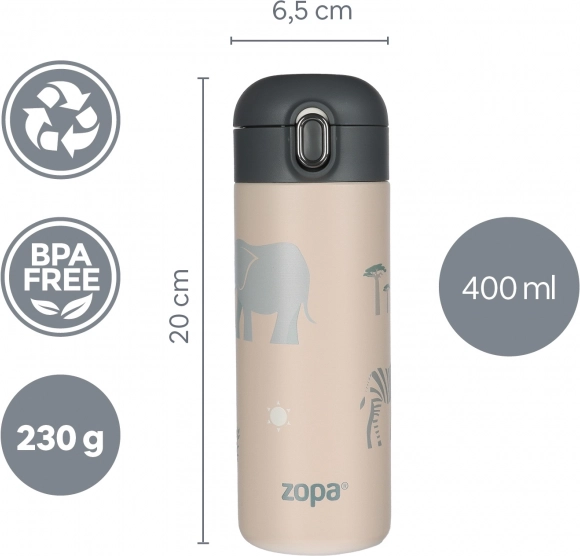 Un jus rafraîchissant ou un thé chaud ? Le thermos design de 400 ml avec des motifs ludiques et un bouchon hermétique garde les boissons