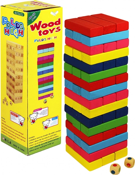 Tour en bois colorée est un excellent choix pour le divertissement et le développement des compétences motrices. Le jeu consiste à retirer progressivement les blocs colorés de la tour existante et à les empiler sur son sommet.