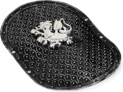 Impressionnant design avec des symboles de dragon sur l'armure et le bouclier qui attirera tout petit chevalier.