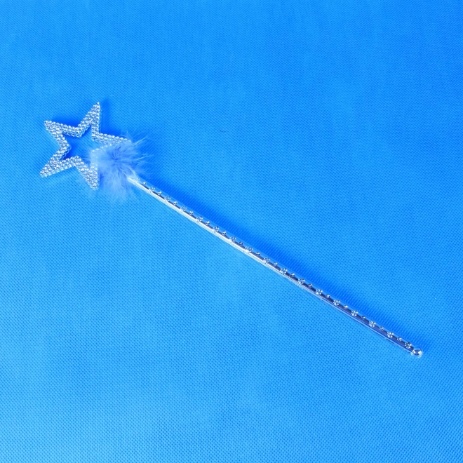 La baguette magique arbore un design étoilé avec des pierres bleues soulignant son élégance magique.