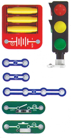 Contient toutes les pièces nécessaires pour assembler un feu tricolore réaliste, y compris les voyants et les connecteurs.
