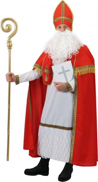 - Mitre de Saint-Nicolas, tunique blanche, cape rouge avec col, écharpe avec croix