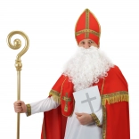 Le kit comprend une mitre, une tunique blanche, une cape rouge et une écharpe avec croix – il suffit d’ajouter la crosse et la barbe.