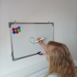 Le tableau permet d'écrire et d'effacer facilement avec des marqueurs spéciaux et une gomme magnétique, qui est incluse dans le paquet.