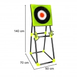 L’ensemble est conçu pour un jeu sécurisé grâce au silicone souple sur les zones d’impact et au plastique résistant. La grande cible au motif bullseye contrasté offre un retour visuel clair et motive à de meilleures performances.