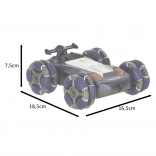 Les roues omnidirectionnelles assurent une excellente adhérence et maniabilité : la voiture se déplace dans toutes les directions, réussit les rotations sur place et des virages spectaculaires. Les lumières LED et l’effet fumée (vapeur d’eau) maximisent l’immersion et transforlent chaque course en show.