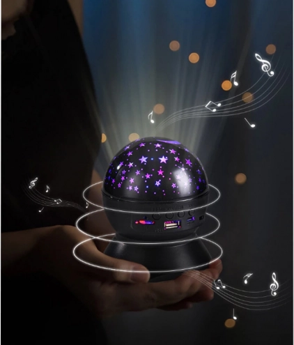Essayez la transformation magique de votre pièce grâce au projecteur de ciel étoilé et profitez d'incroyables figures sur les murs et le plafond. Sa polyvalence permet une utilisation comme veilleuse ou haut-parleur qui vous charmera par sa qualité sonore. Grâce au Bluetooth et à l'entrée USB, vous pouvez facilement lire votre musique préférée de n'importe où.