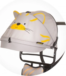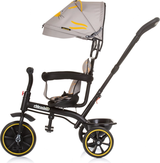 Le tricycle est dote9 d'un design amusant de style tigre, y compris des de9tails d'oreilles sur le toit.