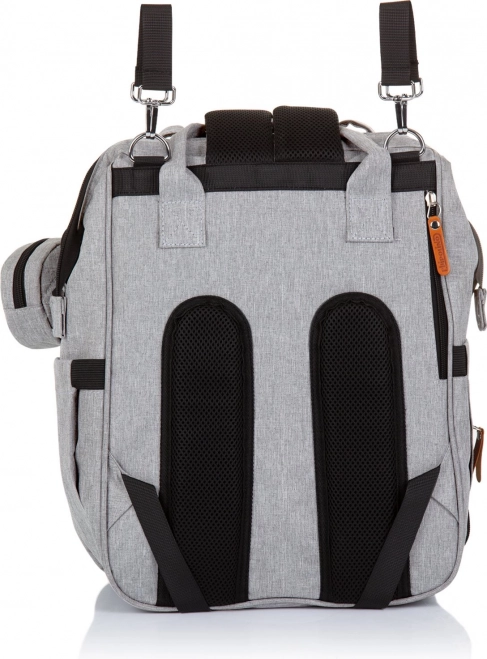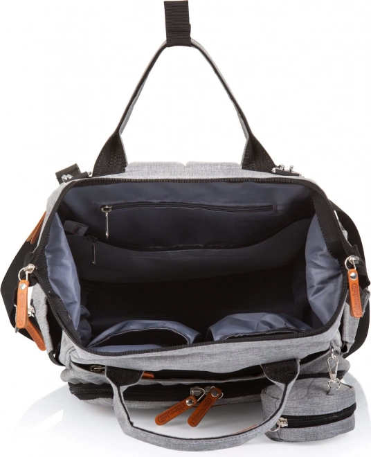 Ce sac à dos à langer stylé en gris allie design moderne et fonctionnalité maximale. Grâce aux nombreuses poches, dont trois poches isothermes intérieures pour bouteilles, vous trouverez rapidement tout l’essentiel – des couches au goûter. Le sac se fixe facilement à la poignée de la poussette et, grâce aux bretelles rembourrées, se porte confortablement sur le dos.