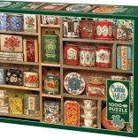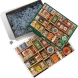 Découvrez le puzzle de qualité COBBLE HILL représentant des boîtes à thé rétro, qui ravira les amateurs de détails et de motifs de collection. La découpe originale ne suit pas une grille standard, ce qui apporte une difficulté accrue et une expérience d’assemblage unique.