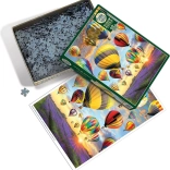 Découvrez le charme des montgolfières survolant un champ de lavande avec ce puzzle COBBLE HILL. La découpe spéciale non quadrillée propose des formes de pièces originales et un challenge amusant pour tous les amateurs de puzzles. La boîte contient également un poster pratique (31,6 × 22,9 cm) facilitant l’orientation dans le motif détaillé.