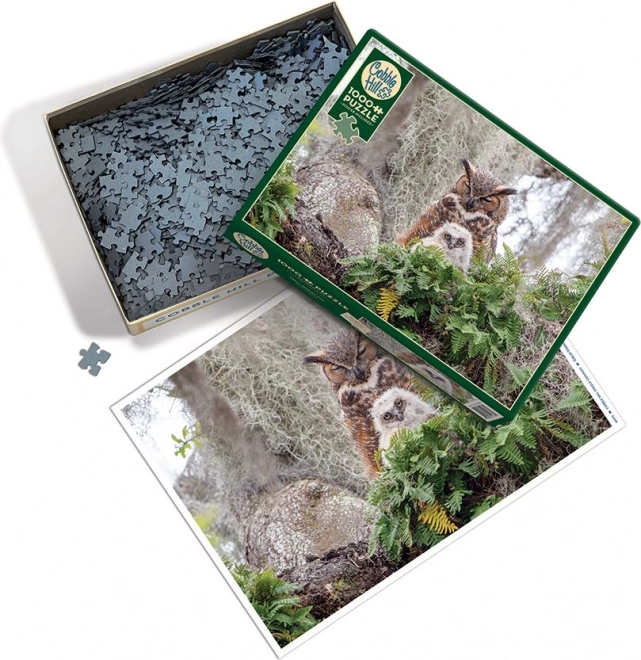 Plongez dans une scène finement travaillée où le majestueux grand-duc d’Amérique veille sur son petit au cœur d’une végétation luxuriante. La marque COBBLE HILL est réputée pour la qualité exceptionnelle de son impression et ses motifs nature variés, que vous apprécierez à chaque étape de l’assemblage. Grâce à la découpe originale sans grille classique, chaque pièce a une forme unique et le puzzle offre ainsi une expérience plus ludique et plus exigeante.