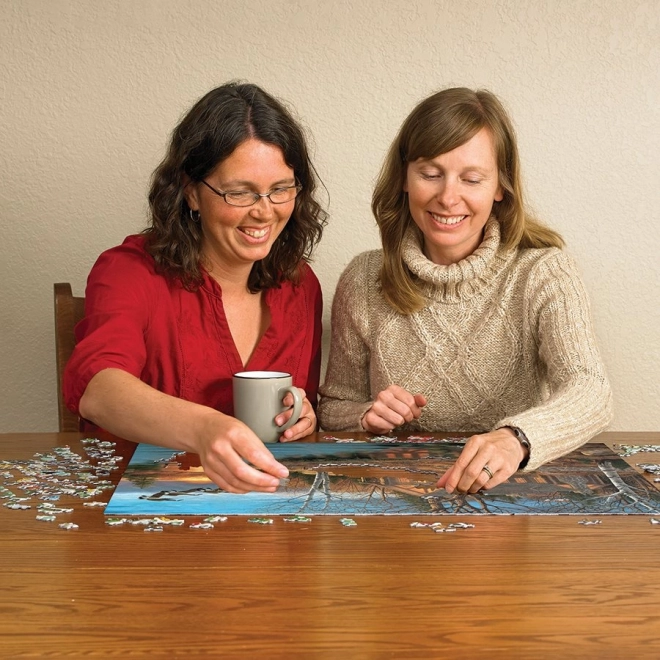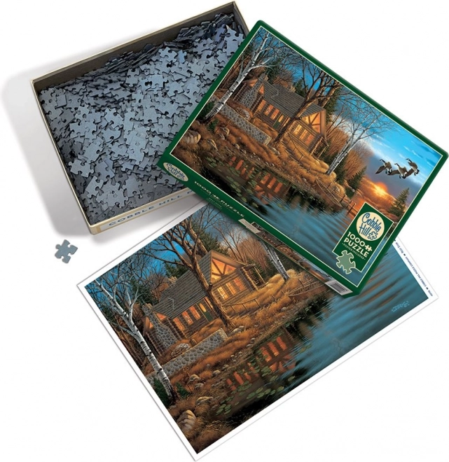 Le motif atmosphérique d’un chalet tranquille au bord d’un lac au coucher du soleil ravira tout amateur de nature et de détente. Ce puzzle de 1000 pièces de COBBLE HILL se distingue par la forme irrégulière de ses pièces, qui ne suivent pas une grille standard – l’assemblage est plus ludique et un peu plus exigeant.