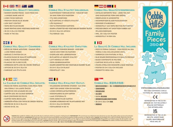 Profitez de moments partagés avec le puzzle familial COBBLE HILL Amis de fête de 350 pièces, qui propose trois tailles de pièces différentes pour enfants, parents et grands-parents. Les pièces grandes, moyennes et petites facilitent l’assemblage pour tous les âges et apportent du plaisir à toute la famille. La découpe non conventionnelle des pièces augmente le défi et le plaisir d’assemblage.
